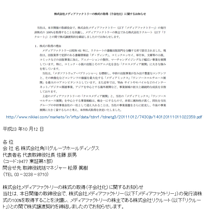 ÃëµæÇÏ´Â °ÍÀ» °áÀÇÇØ, ¹Ìµð¾î ÆÑµµ¸®ÀÇ ÁÖÁÖÀÎ ÁÖ½Äȸ»ç ¸®Å©·çÆ®(ÀÌÇÏ ¡¸¸®Å©·çÆ®¡¹)¿ÍÀÇ »çÀÌ¿¡